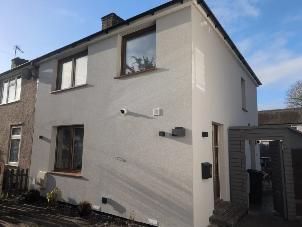 Insulation and rendering carried out with care and attention to detail
